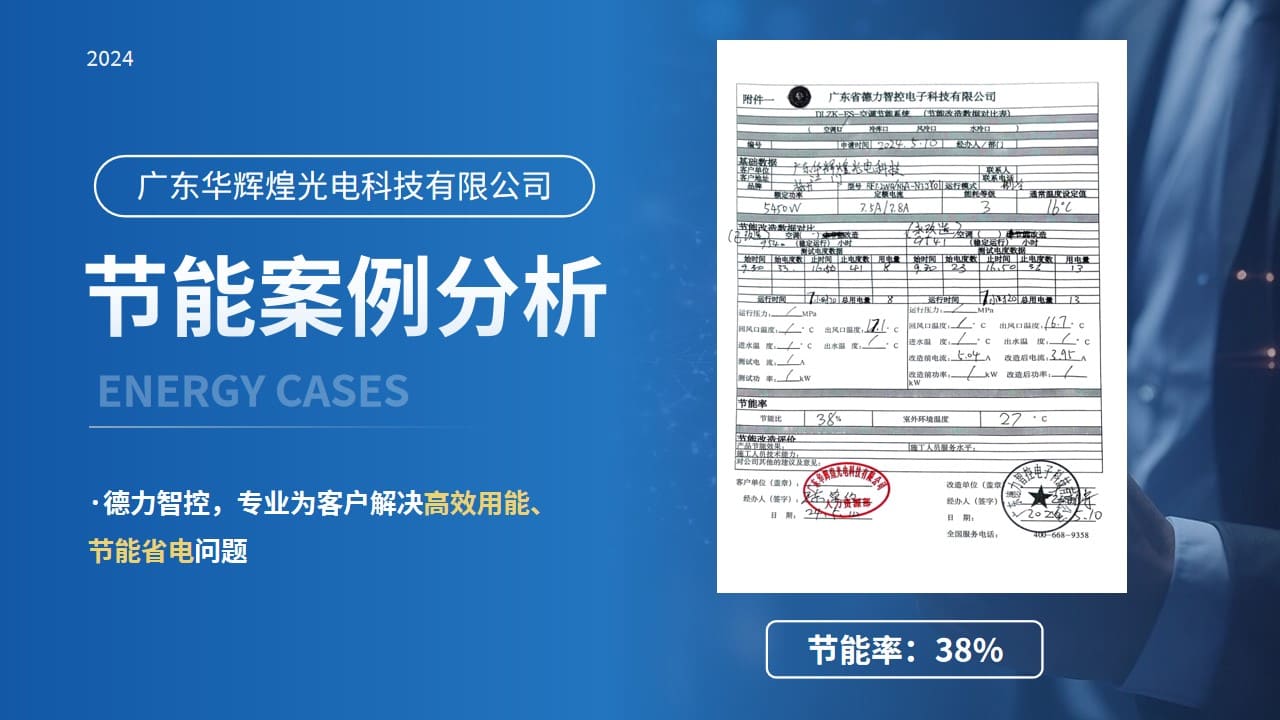 近日,德力智控成功服務了廣東華輝煌光電科技有限公司(以下簡稱:華輝煌光電)總部的辦公樓,為其量身定制了節能省電、綠色舒適的制冷(空調)系統節能改造服務。